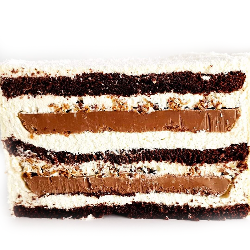Blaturi cu cacao, mousse nucă de cocos, crocant ciocolată, inserție ciocolată cu lapte