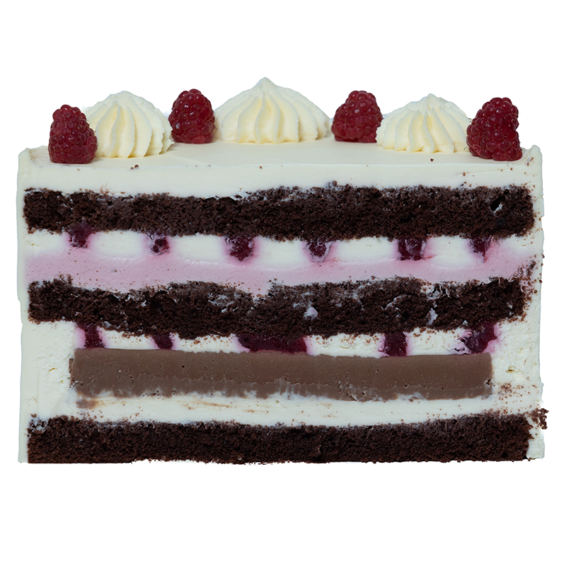 Blaturi de cacao, cremos cu mascarpone și ciocolată albă, inserție cu ciocolată cu lapte, mouse de zmeură și piure de zmeură