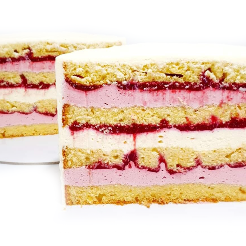 Blaturi cu vanilie, namelaka cu ciocolata albă și vanilie, ganache cu zmeură, piure de zmeură